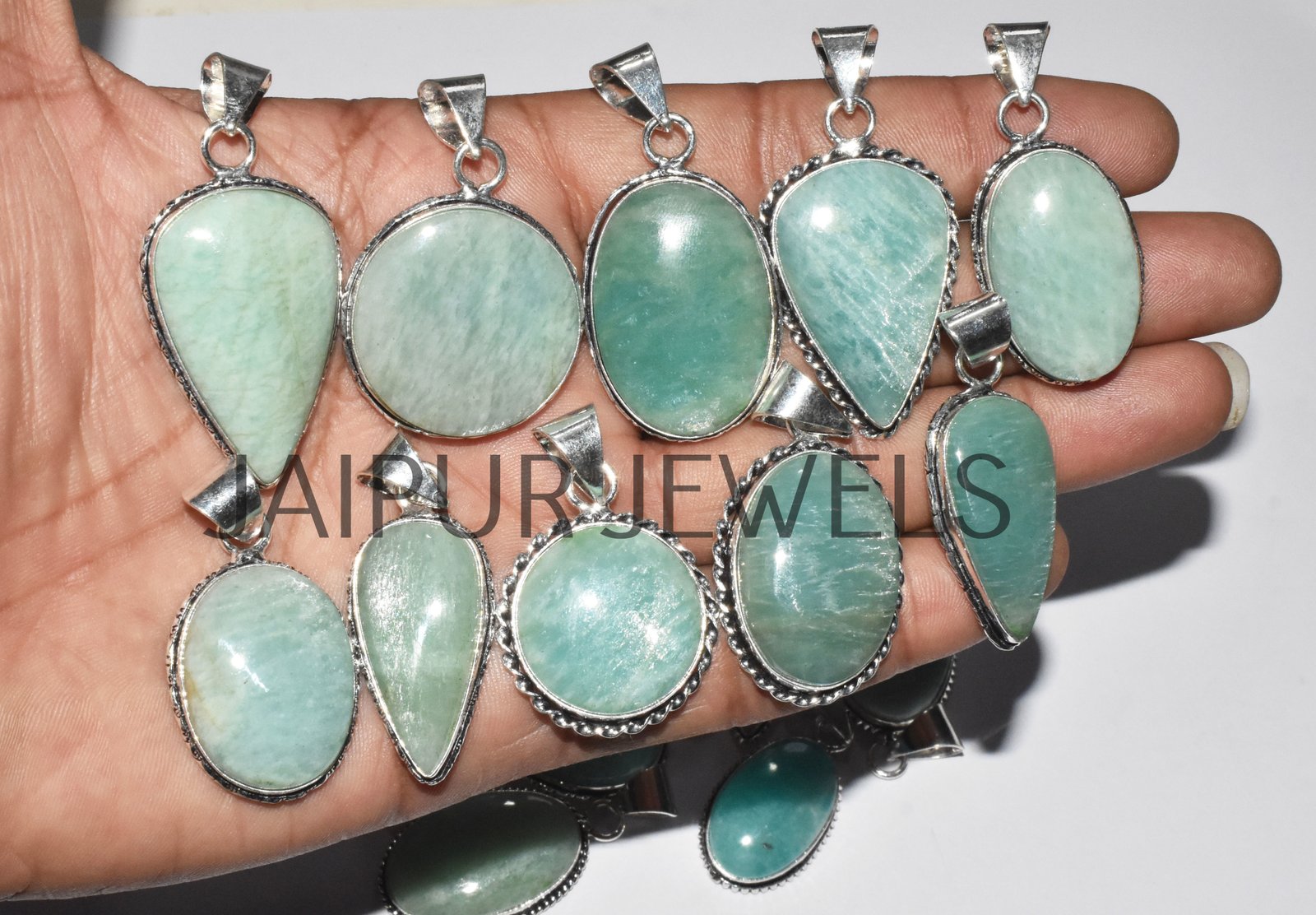 Amazonite Gemstone 925 Sterling Silver Plated Pendants Handmade Pendants Wholesale Lot
